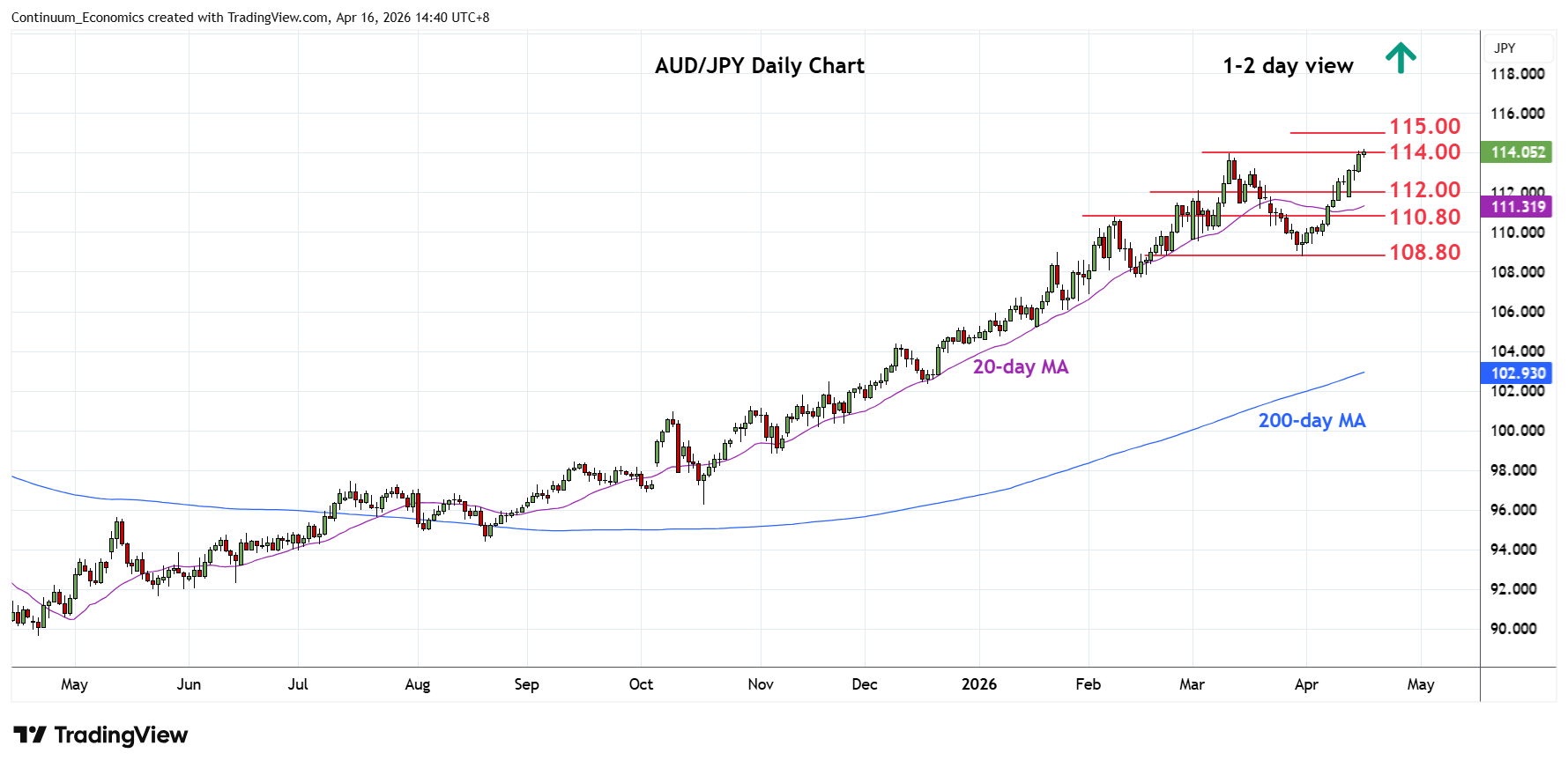 06:50 GMT - Break above the 114.00 level see prices extending gains from the 108.80 March low to reach fresh multi-year high at 114.20. Bullish structure from the April 2025 low keep pressure on the upside and higher will see room for extension to 115.00/116.00 congestion area. However, stretched daily studies caution correcive pullback with support raised to the 113.00/112.00 congestion area which is expected to underpin. Would take break here to open up room for deeper correction to support at the 110.80/110.00 area and 108.80, March swing low.