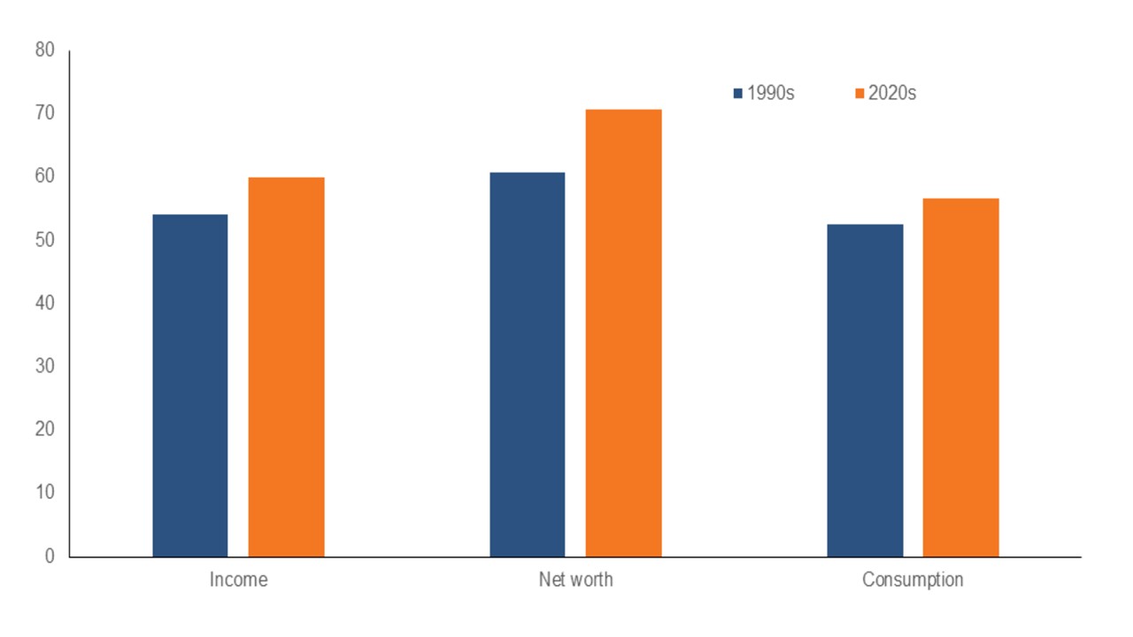 Figure 1: Income, Wealth and Consumption of top 20% (%)