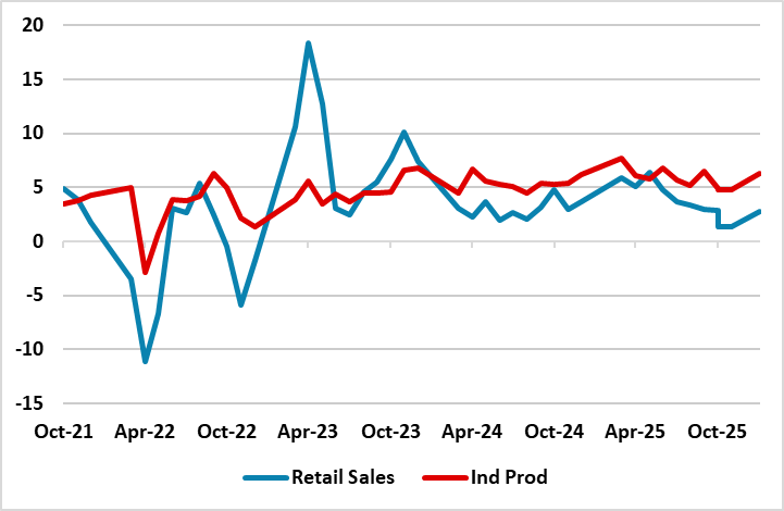 Figure 1: Industrial production and Retail Sales (Yr/Yr %)