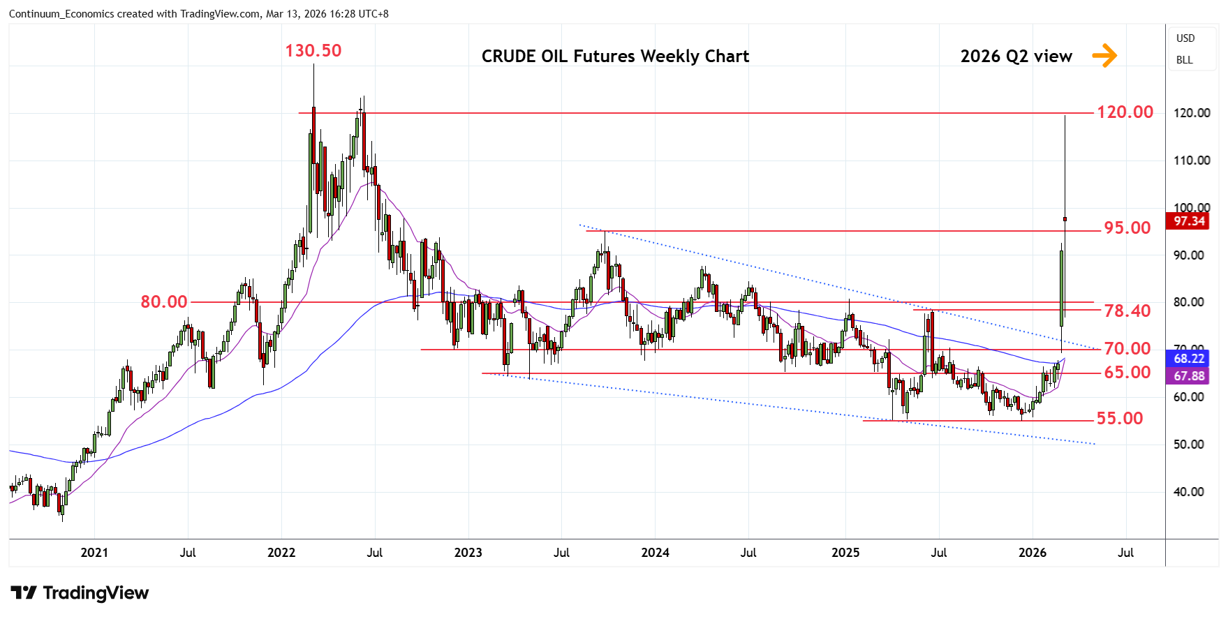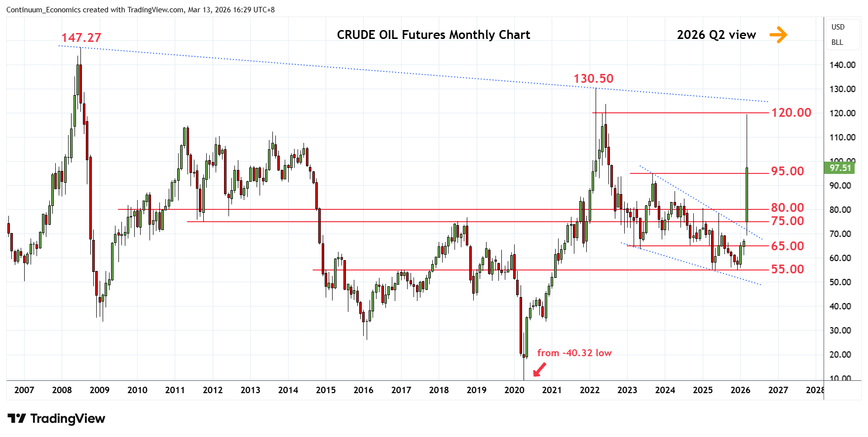 Break above the 100.00 level will return focus to the upside and set up scope for retest of the 120.00 resistance where reaction can be expected. Break here, if seen, will see room for extension to the trend-line from the 2008 high at the 125.00 level. Clearance here, but not expected, will return focus to 130.50 and 147.27, the 2022 and 2008 year highs.