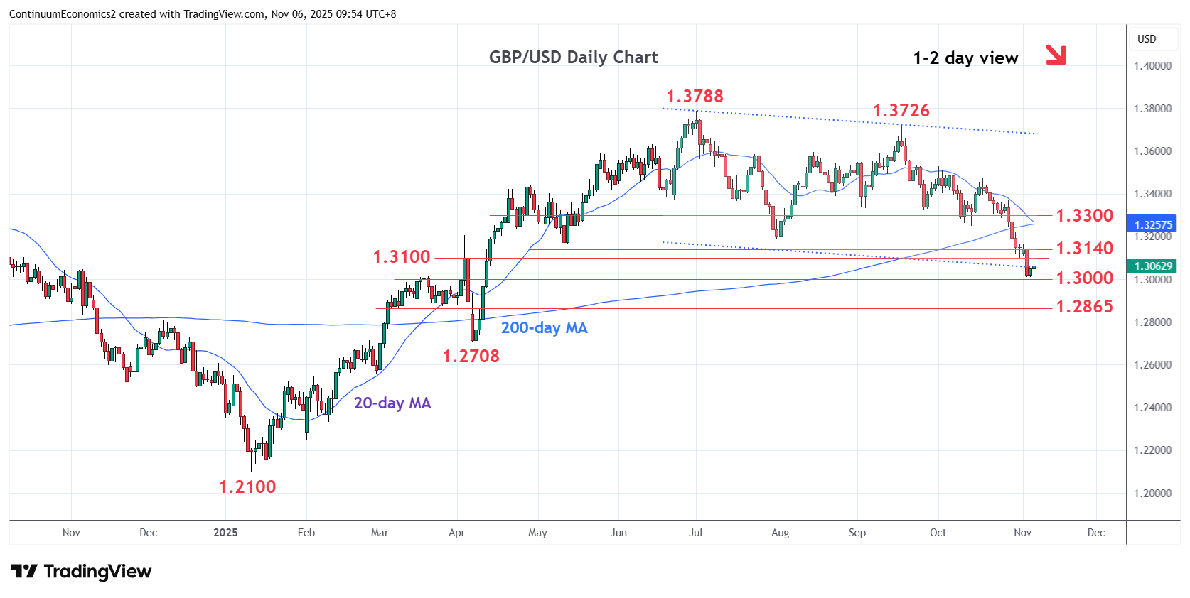 Chart GBP/USD Update: Consolidating test of 1.3014/00 support