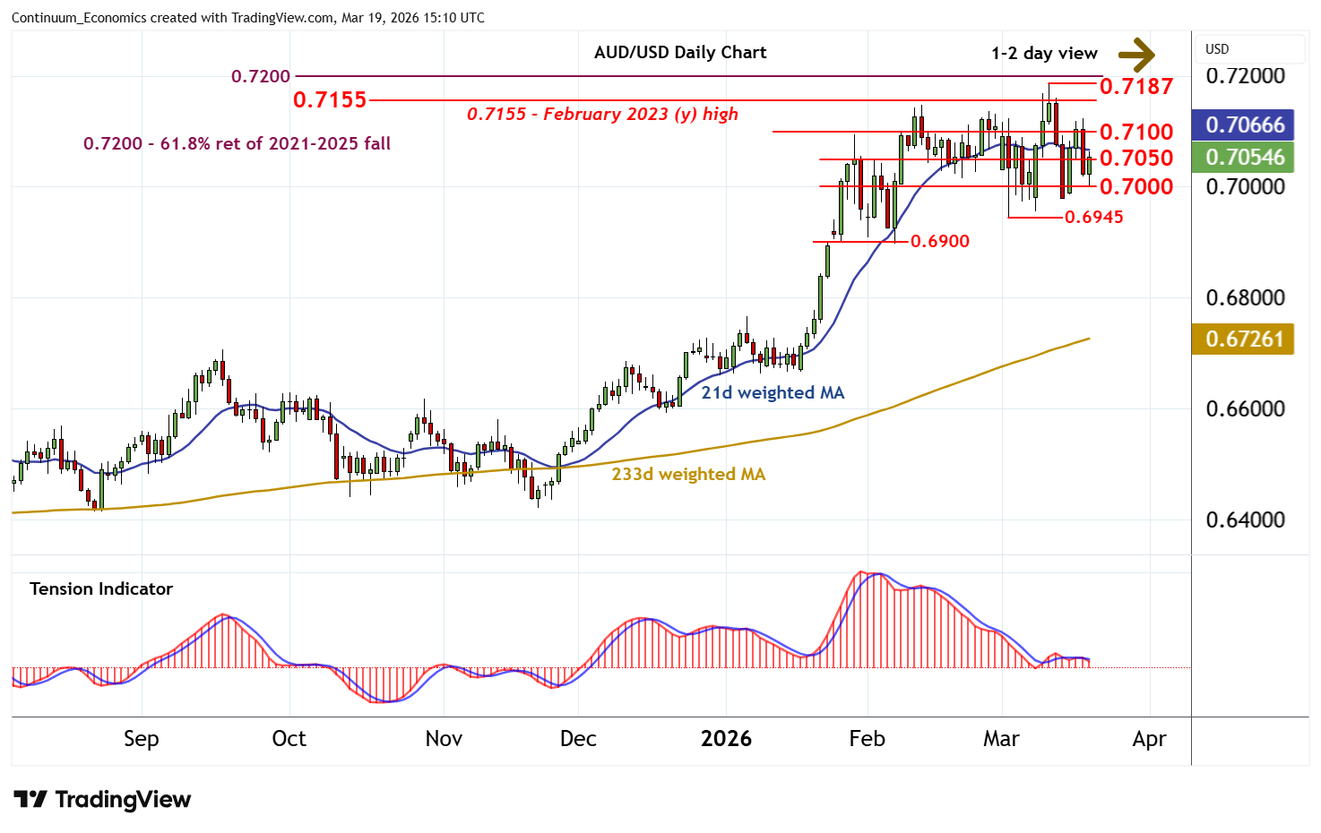 | R2 | 0.7155~ | ** | Feb 2023 (y) high | S3 | 0.6945 | ** | 3 Mar (w) low | |