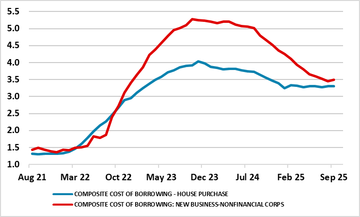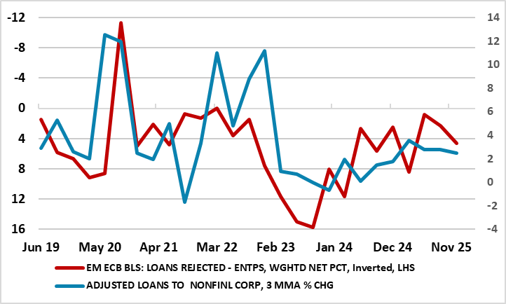 Thus while the ECB may feel it (and the EZ) is a ‘good place’ we are warier whether it can stay there or at least improve in the manner that the ECB is both implicitly and explicitly suggesting. After all, our below consensus and ECB thinking outlook for GDP into 2026 does not depend on fresh weakness. Instead, the 0.8% projection for next year merely extends the Q3 result which is nothing more than a repeat of the underlying growth picture that the EZ has seen for the last two years or so. With this in mind, we feel that the ECB therefore needs to reassess its complacent view of the backdrop – and outlook - particularly regarding credit dynamics the slowing in which we see as being driven by tight(er) financial conditions. This tightening in financial conditions may also reflect another worrying message evident in a recent BLS as well as in some Council comments– namely that QT is not as neutral as the ECB has been alleging. This is something we have highlighted in the past and think will trigger an ECB response in terms of slowing QT now more likely in the new year.