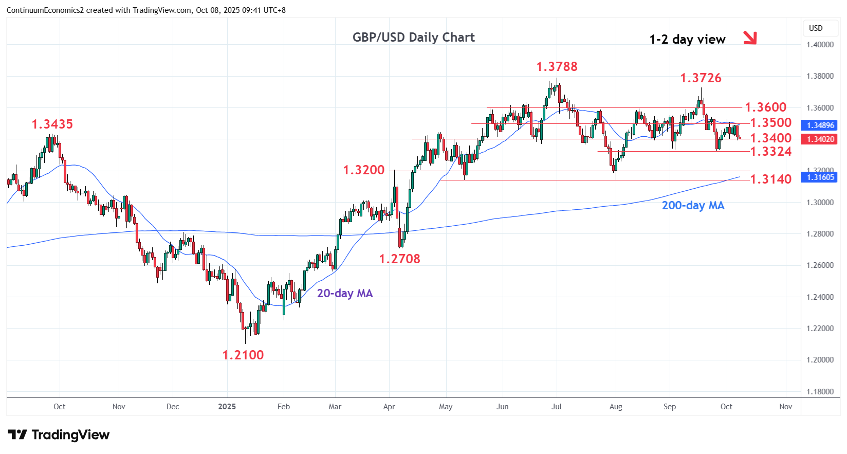 Chart GBP/USD Update: Under pressure, 1.3400 support at risk