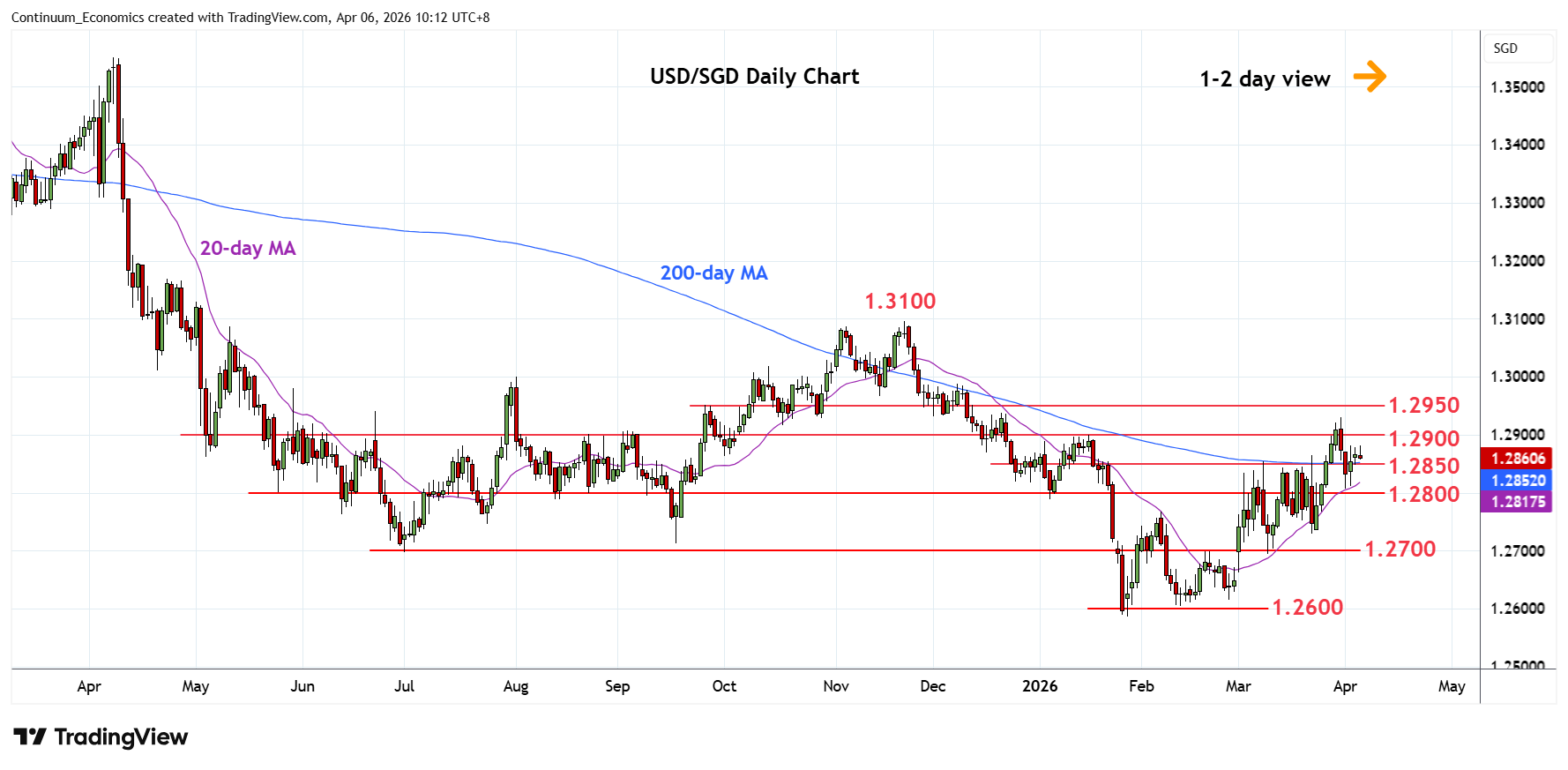 Chart USD/SGD Update: Higher in consolidation above 1.2800