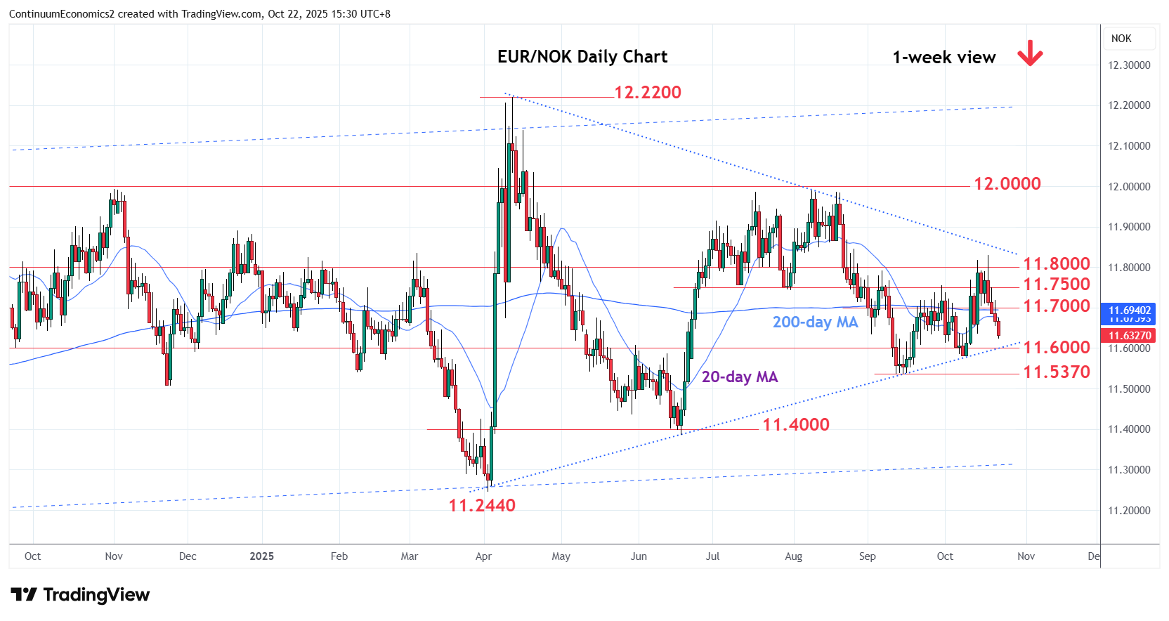 EUR/NOK is slightly softer after the Norges Bank decision to leave rate unchanged, which was entirely expected. They also didn’t change the outlook for policy, noting that “the policy rate forecast presented in September was consistent with one rate cut per year in the coming three years. The Committee's assessment is that no new information has come in that indicates a material change to the outlook for the Norwegian economy”. So there isn’t much reason for any impact on the currency, with all this in line with consensus. But the NOK still offers and attractive yield compared to the EUR and SEK, and has substantially underperformed in the last year or two, particularly against the SEK. The 12 level in EUR/NOK looks like an effective top, and if so there is very limited NOK downside from here. While the NOK does tend to suffer in risk negative periods, longer term players should see the NOK as attractive.