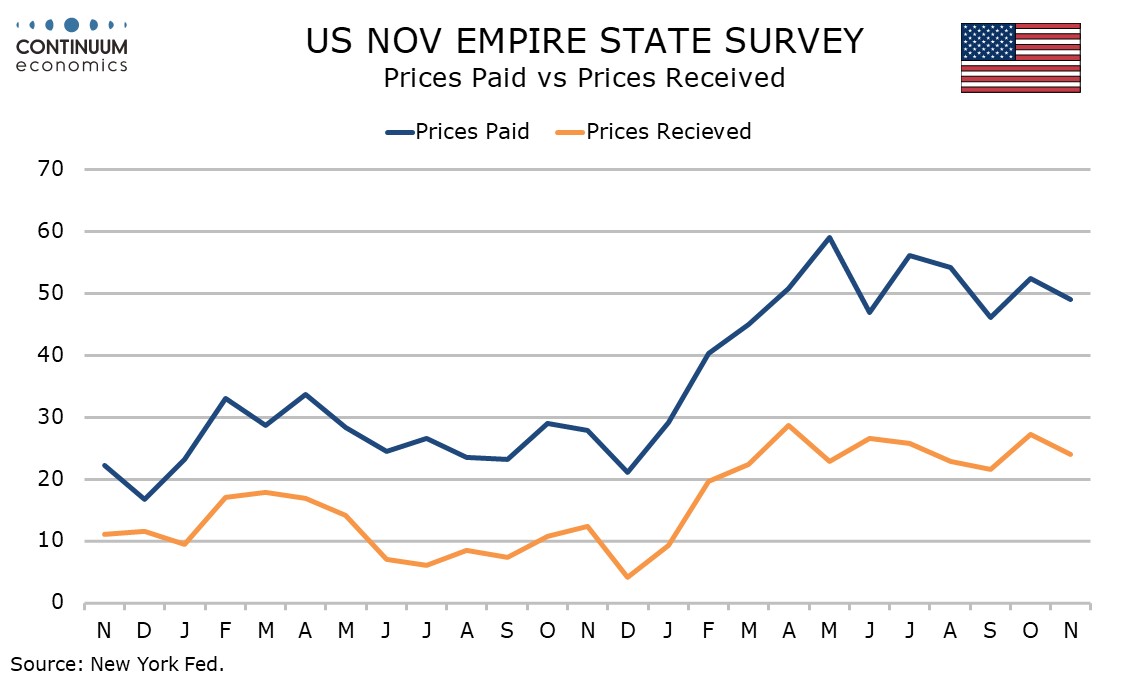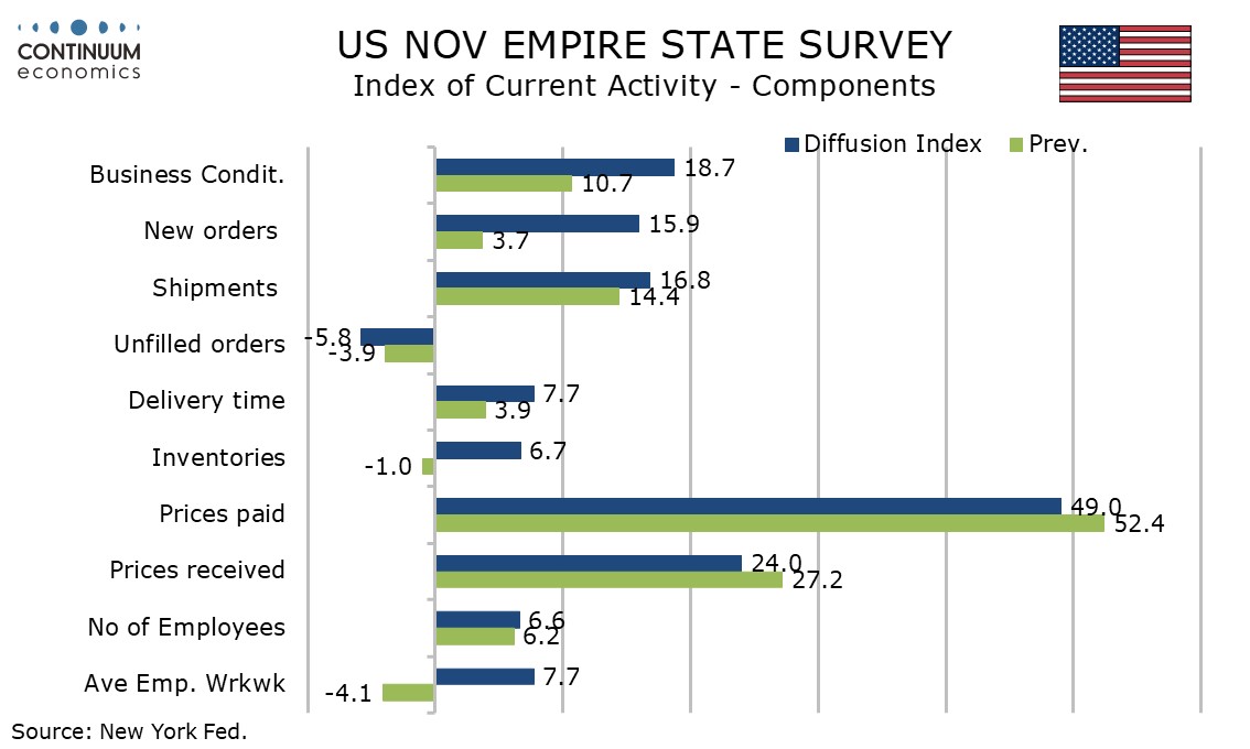 U.S. November Empire State Manufacturing Survey - Activity sees 12 month high, prices slower but still firm