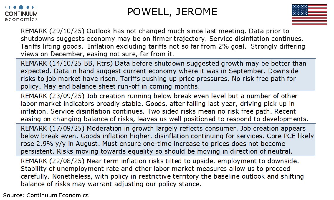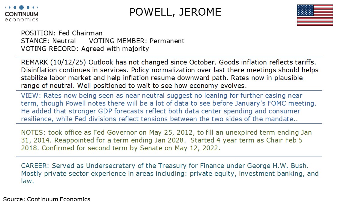 Fed's Powell seeing rates as within the neutral range suggests limited urgency to ease again.