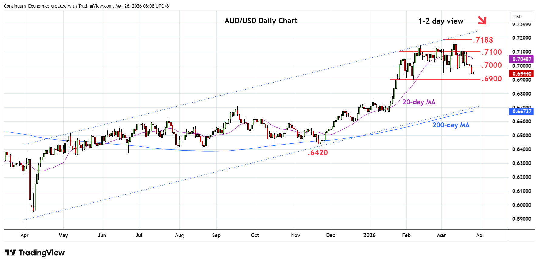 | R4 | 0.7188 | ** | 11 Mar YTD high | S1 | 0.6910/00 | ** | 23 Mar, Feb lows | |