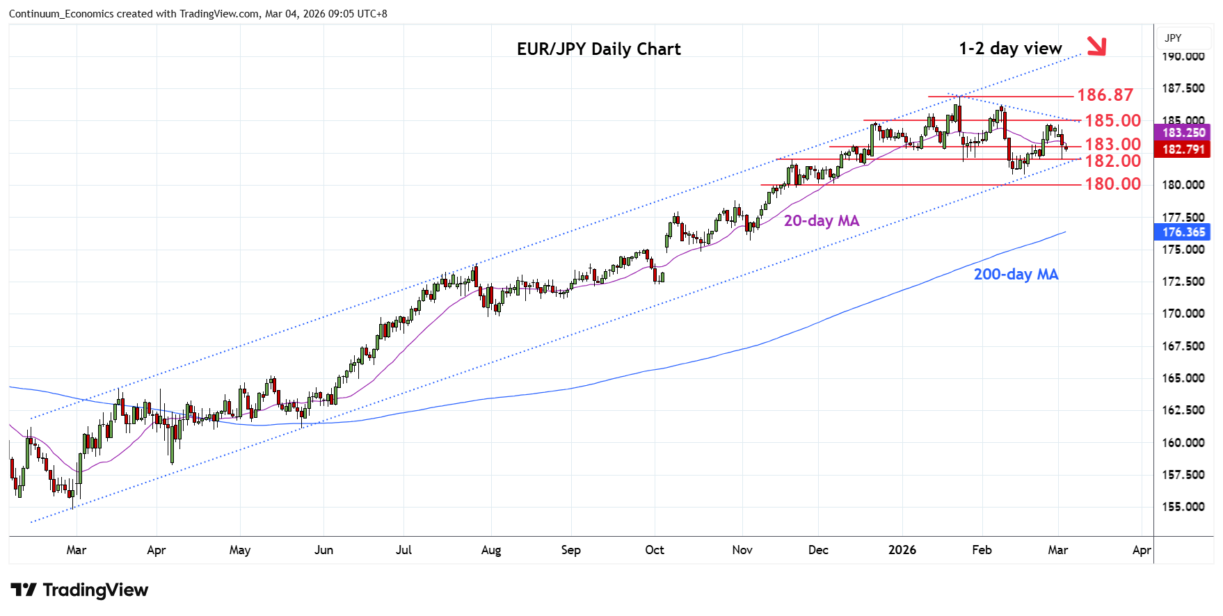 | R2 | 184.78 | ** | 25 Feb high | S3 | 180.00 | ** | congestion | |