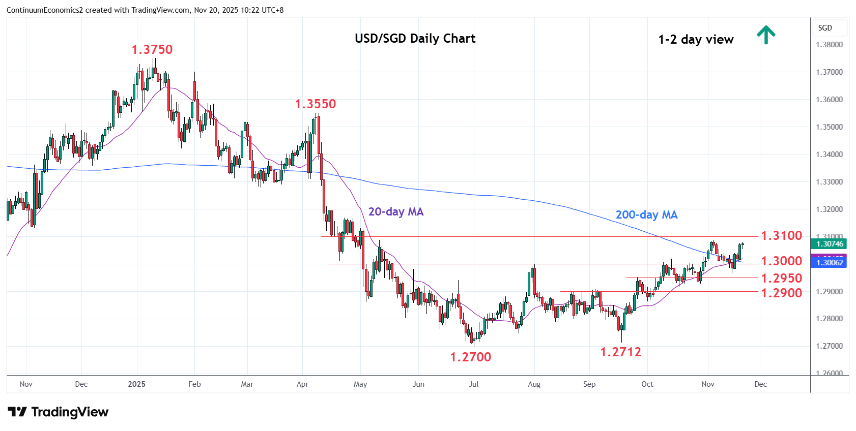 Chart USD/SGD Update: Extending gains, 1.3085 resistance within reach