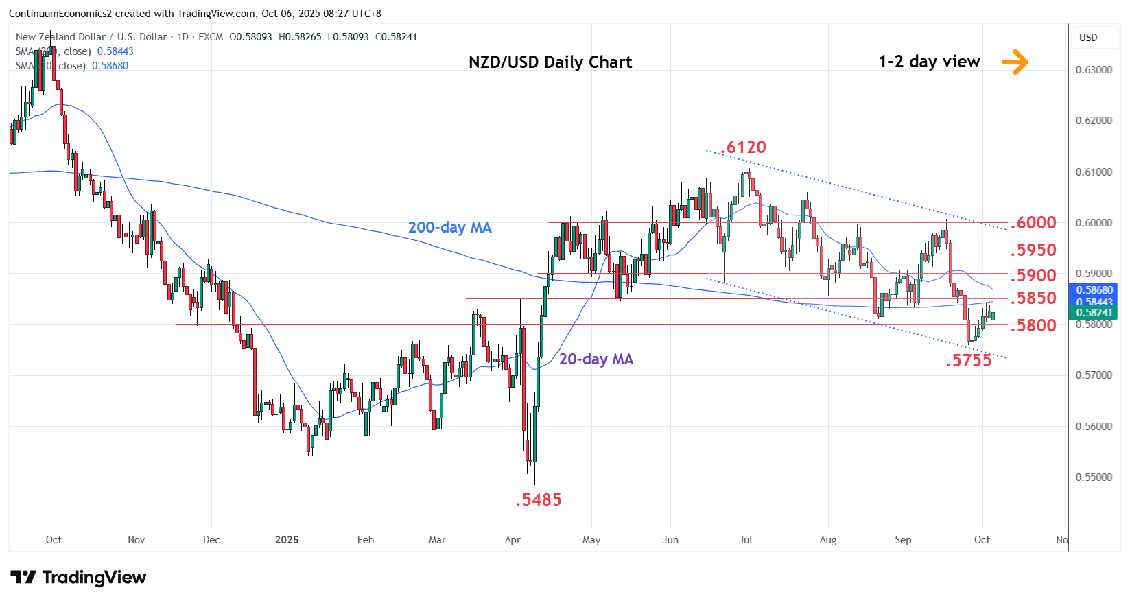 Chart NZD/USD Update: Consolidating test of .5830/50 resistance, room for higher