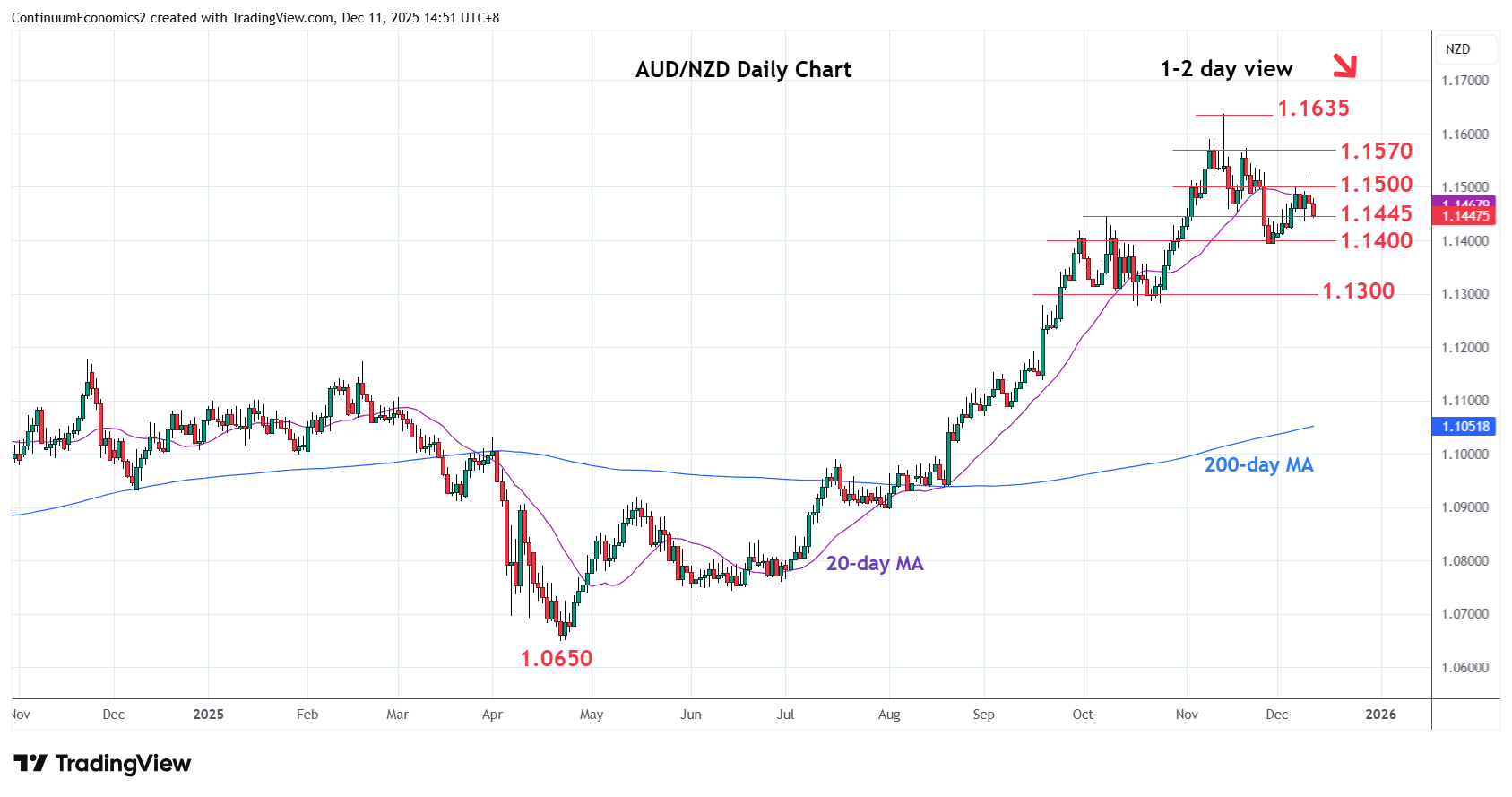 Chart AUD/NZD Update: Leaning lower from test of 1.1500