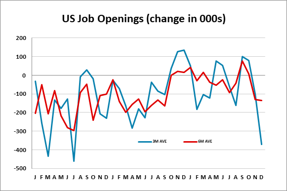 U.S. December JOLTS report - Third straight decline in openings