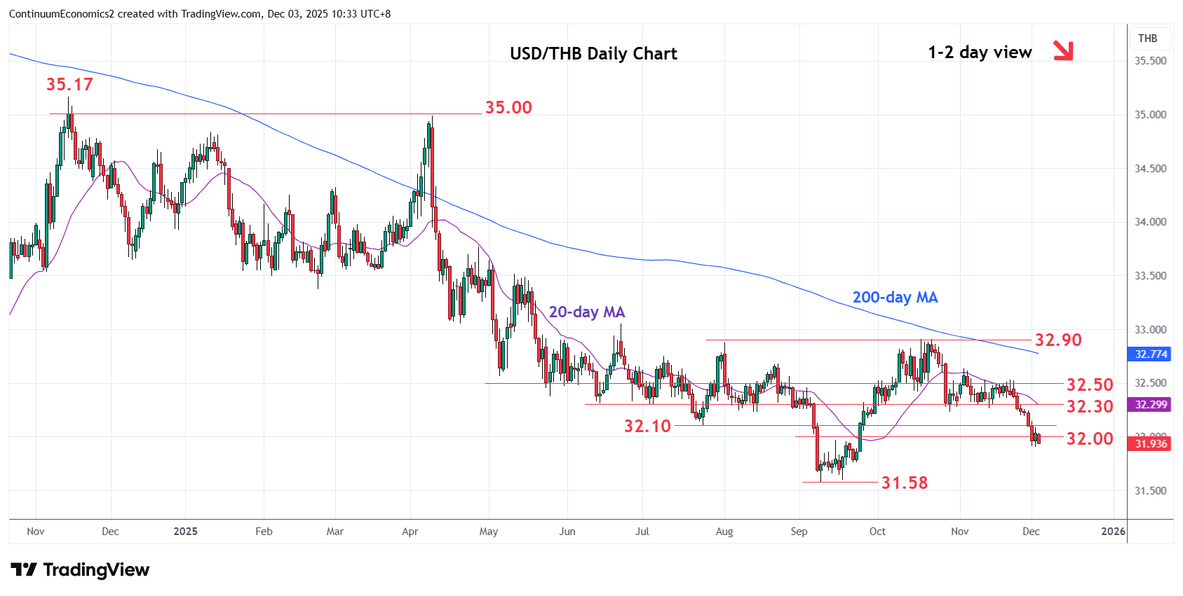 Chart USD/THB Update: Consolidating, but still heavy