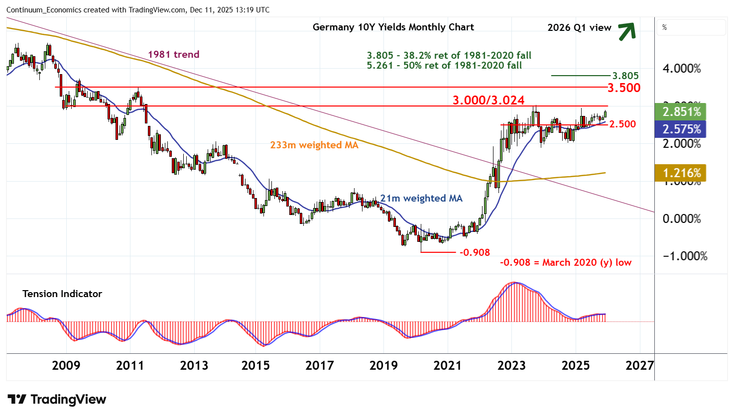 This will confirm a multi-month period of rising yields, as yields continue to correct the 1981 bear trend and extend gains from the March 2020 year low of -0.908% towards congestion around 3.500%. However, bearish longer-term charts could limit any initial tests of here in fresh consolidation.
