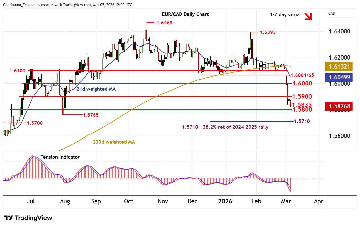 Chart EUR/CAD Update: Extending losses