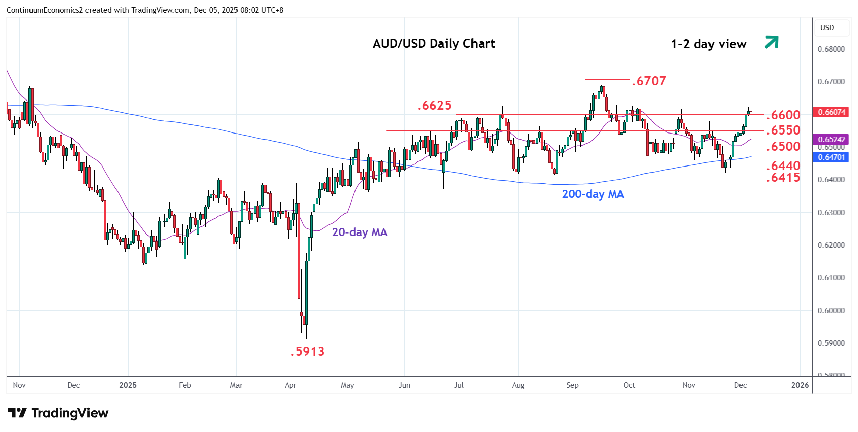 Chart AUD/USD Update: Consolidating test of .6600/25 resistance