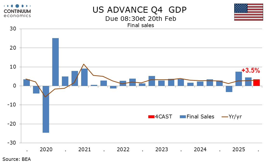 It now looks clear that Q4 GDP is going to be significantly stronger than the flat outcome we expected in the quarterly outlook, with our calculation now at 3.6% annualized. Domestic demand appears to have maintained momentum with the main uncertainty being to what extent the trade balance can sustain a sharp narrowing seen in October.