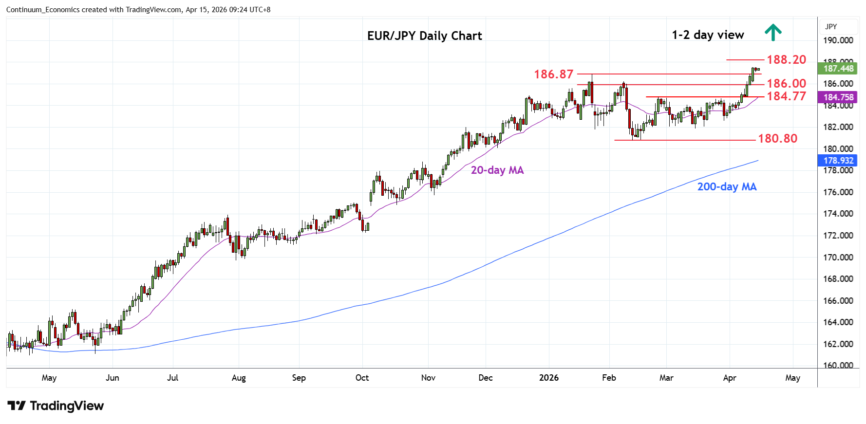 Little change, as prices drift narrowly below the 187.50, fresh multi-year high