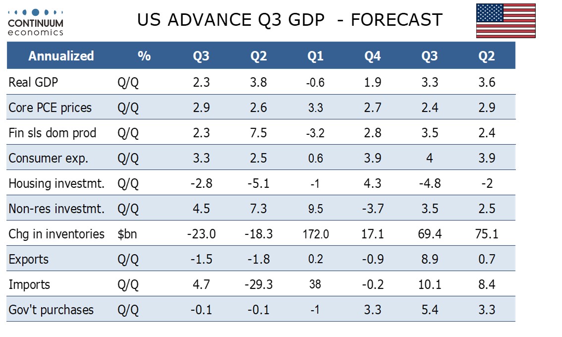 With the US government shutdown not looking set for a quick resolution, it is a good time to take a fresh look at Q3 GDP, which is scheduled for October 30, the day after the FOMC next meets, though the release could be delayed even if the shutdown is over by then. We now look for an increase of 2.3%, a significant upward revision for a 1.2% forecast made with our quarterly outlook, though still weaker than a 3.8% estimate coming from the Atlanta Fed.