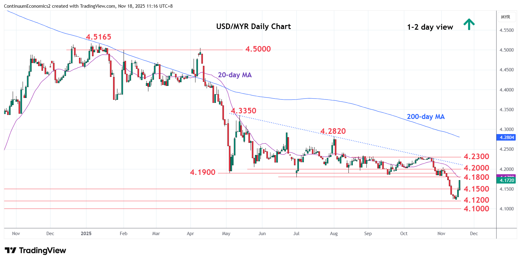 Chart USD/MYR Update: Rebound see room to retest 4.1800/4.1900 resistance