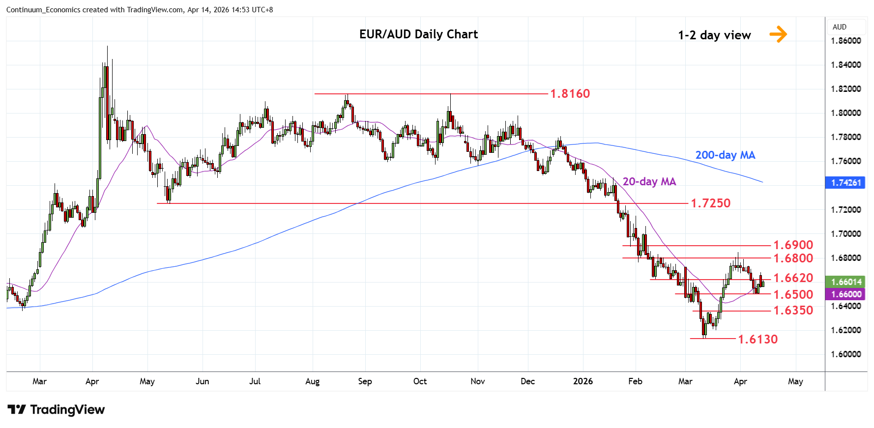 07:10 GMT - Higher from the 1.6500 level as prices consolidate losses from the 1.6845 high of last week and unwind oversold daily studies. However, negative weekly studies see this giving way to retest of the 1.6500 level and where break will see room for deeper pullback to support at 1.6425 low. Lower still, will see scope for extension to strong support at 1.6350, 13 March high. Meanwhile, resistance is lowered to the 1.6620 congestion and extending to 1.6680 bounce high which is expected to cap and sustain losses from 1.6845 March swing high.