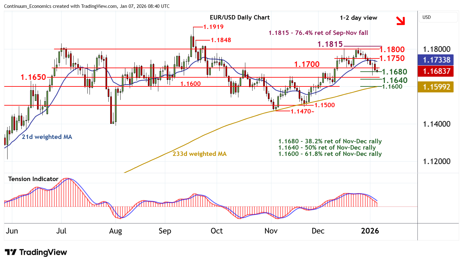 But we would favour some further USD gains here against the European currencies, with the latest European data on the soft side and the EUR looking toppy technically both against he USD and on the crosses.