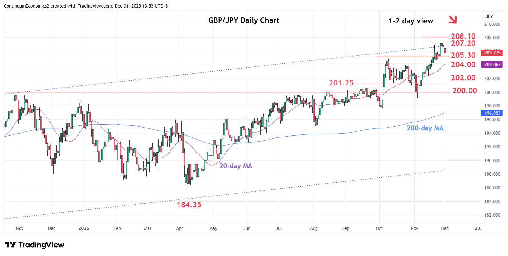 Chart GBP/JPY Update: Leaning lower from 207.20, November YTD high