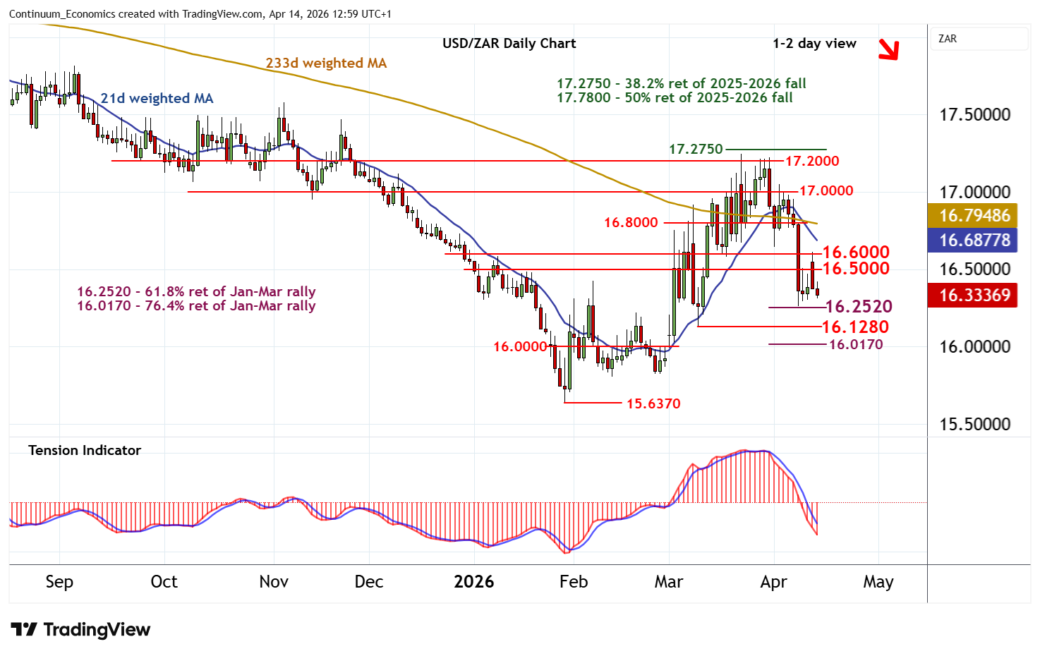 | R2 | 16.6000 | break level | S3 | 16.0170 | ** | 76.4% ret of Jan-Mar rally | ||