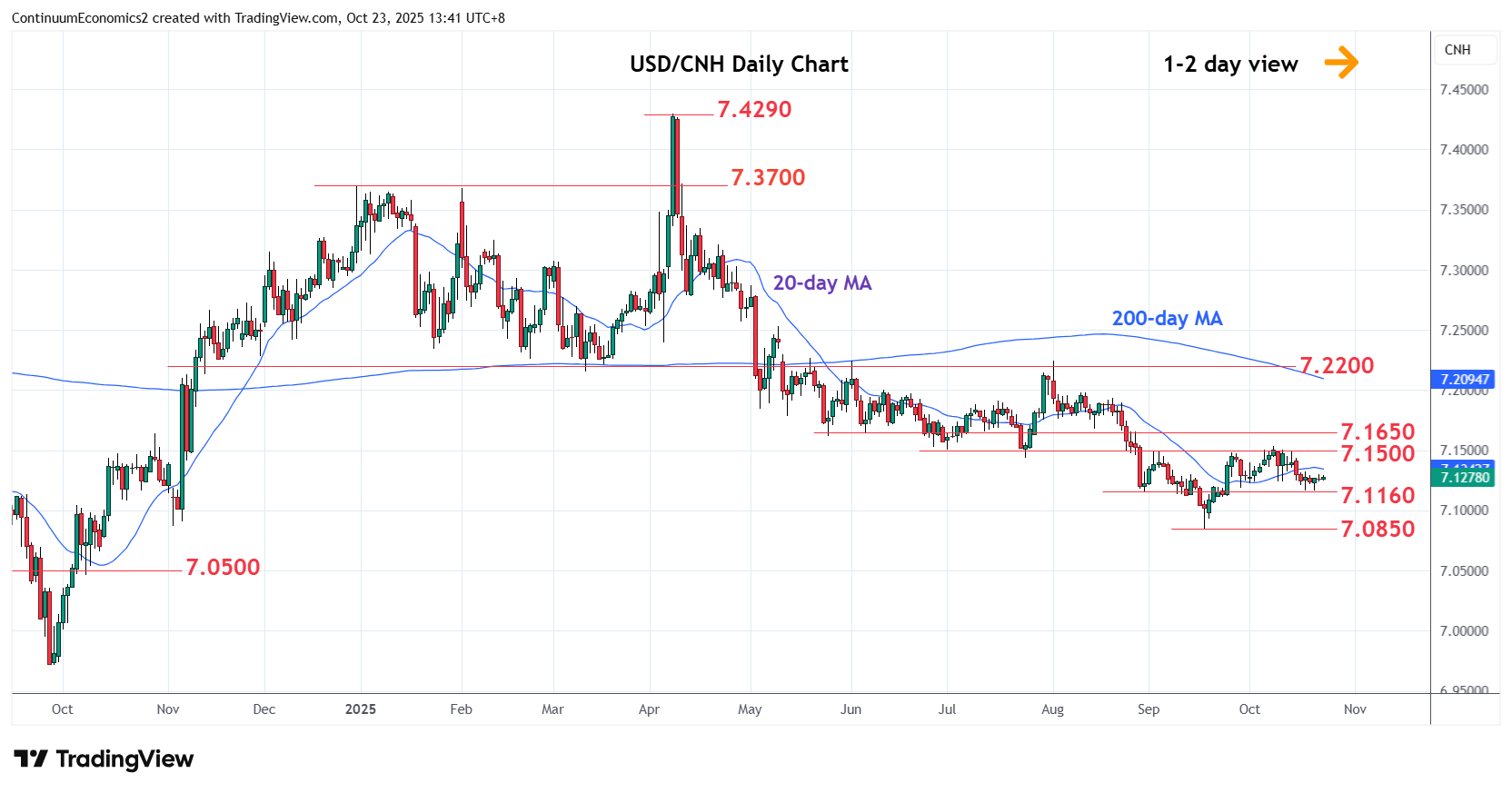 | R1 | 7.1500/35 | ** | congestion, 8 Oct high | S4 | 7.0800 | * | 76.4% Sep 2024/Apr rally |