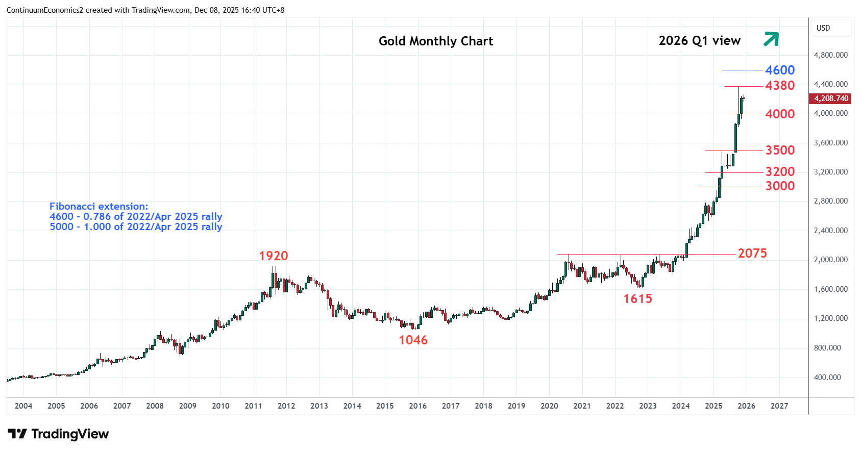 Chartbook: US Chart Gold (XAU): Consolidating below 4380 record high