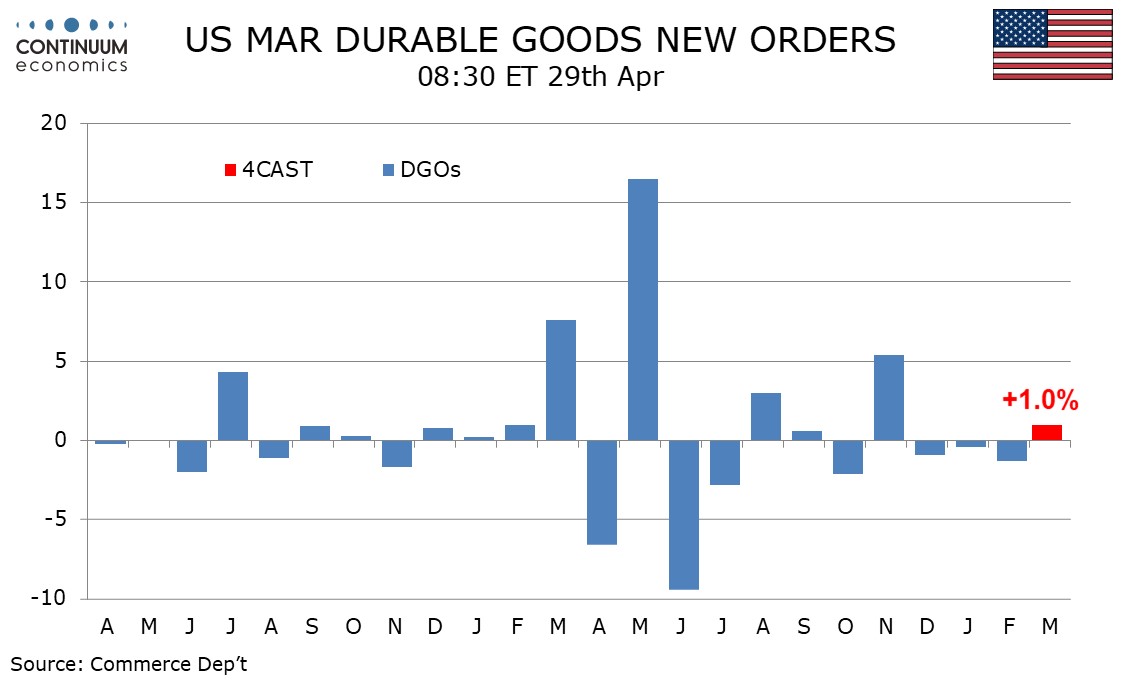 Preview: Due April 29 - U.S. March Durable Goods Orders - A moderate rise, upside risk in defense