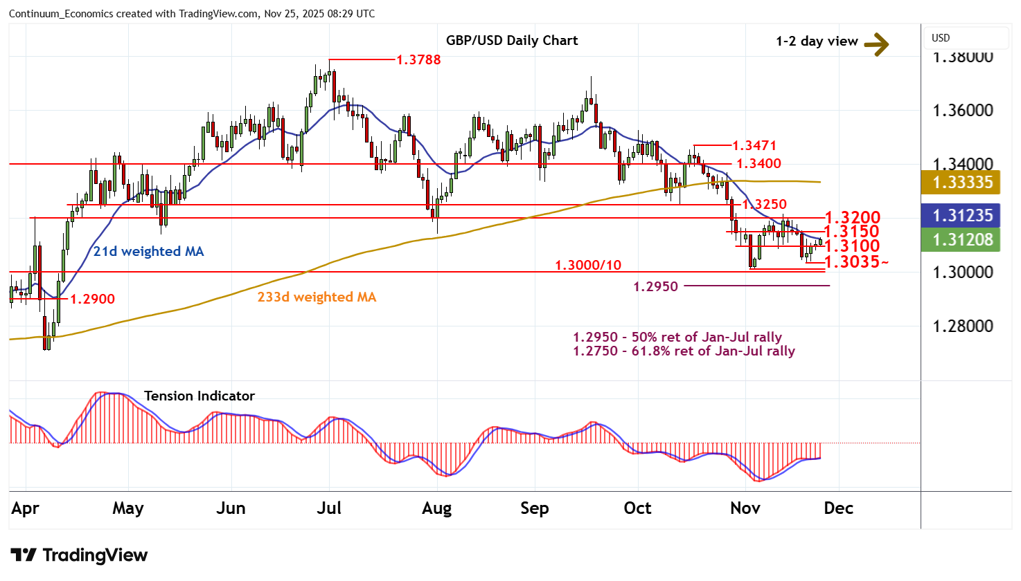 Still little change, as prices extend consolidation above support at the 1.3100 break level