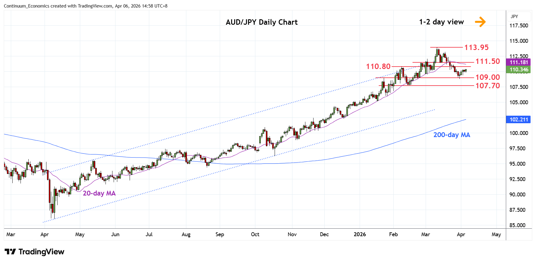 07:00 GMT - Little change, as prices extend consolidation at the 110.00 level following bounce from the 109.00 support last week. Nearby see reistance at 110.80 and only above here will see room for stronger gains to the strong resistance at the 111.50/112.00 area which is expected to cap. Lower high sought to further pressure the downside later and break of the 109.00 level will see room to further retrace the October/March rally to support at the 108.00/107.70 area. Below this, will see room to 107.20, 38.2% Fibonacci level.