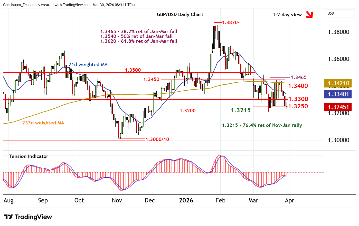 Chart GBP/USD Update: Approaching support at the 1.3215 Fibonacci retracement