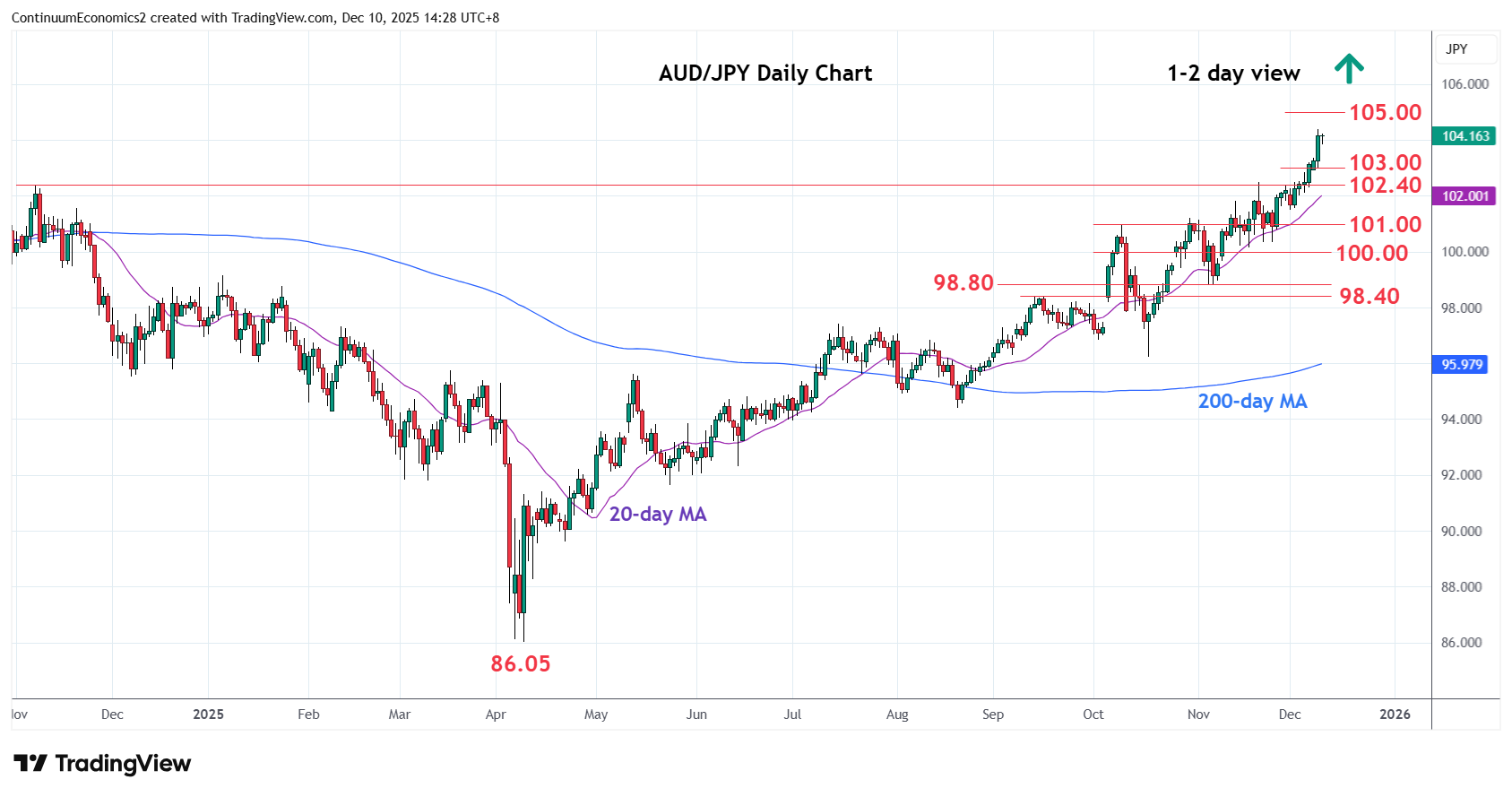 Chart AUD/JPY Update: Consolidating gains to 104.40, fresh year high