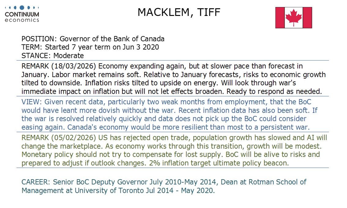 The BoC left rates unchanged with the Iran war increasing uncertainty still further, but sound more dovish on the economic outlook.