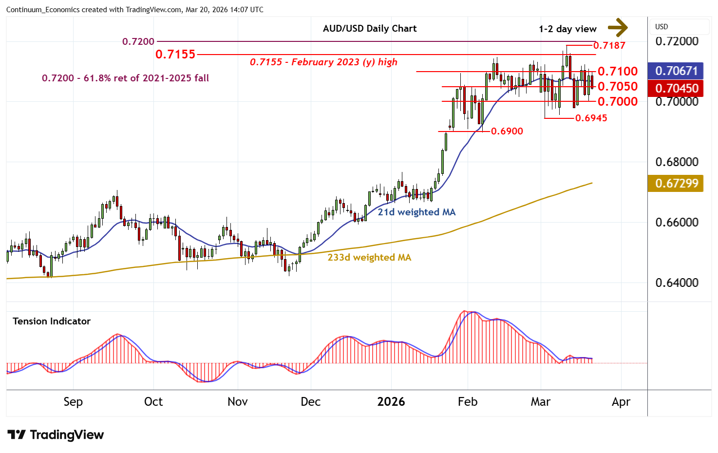 Little change, as prices extend choppy trade within the 0.7050 - 0.7100 range