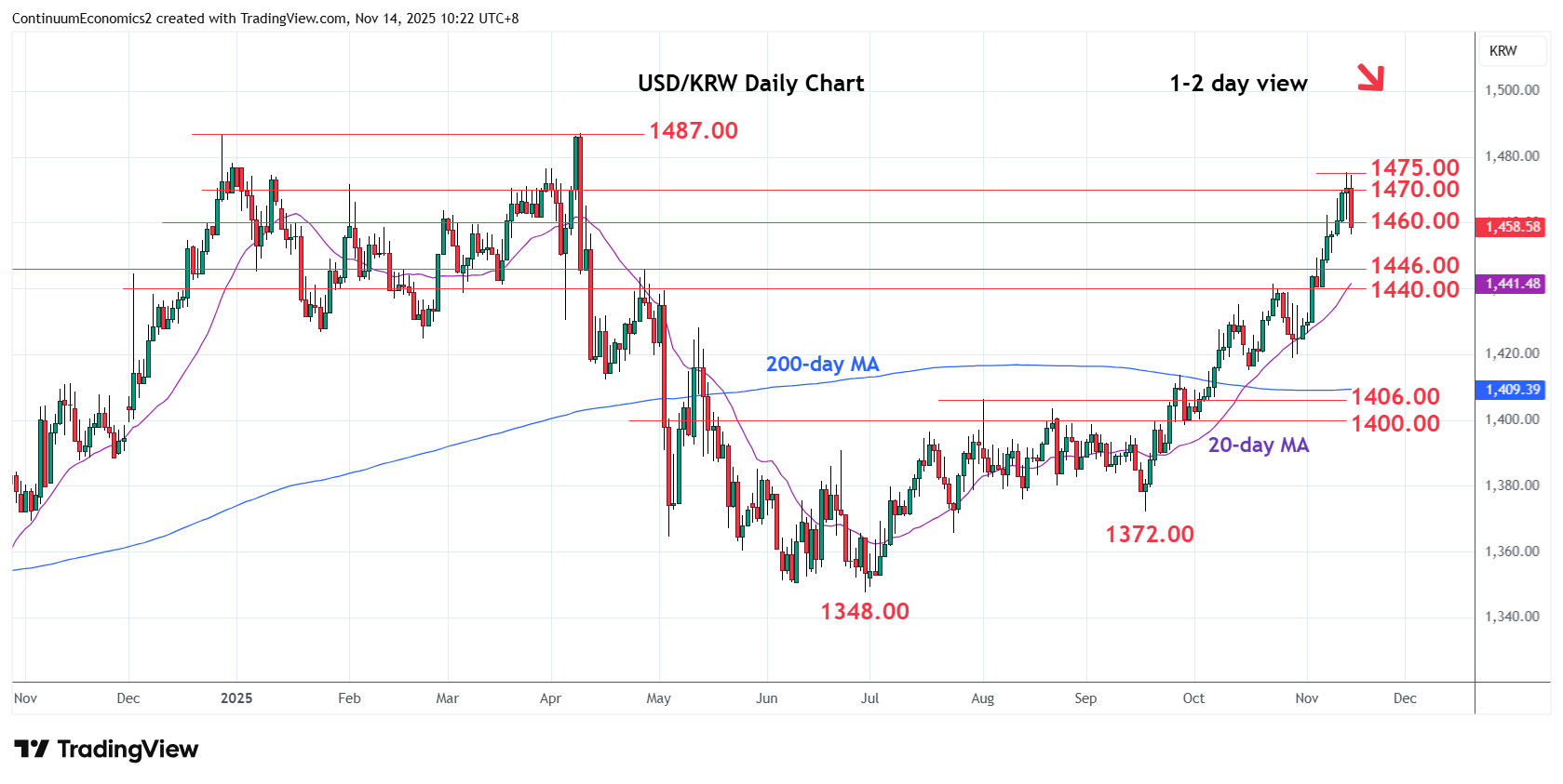 Chart USD/KRW Update: Extending rejection from 1475.00 high