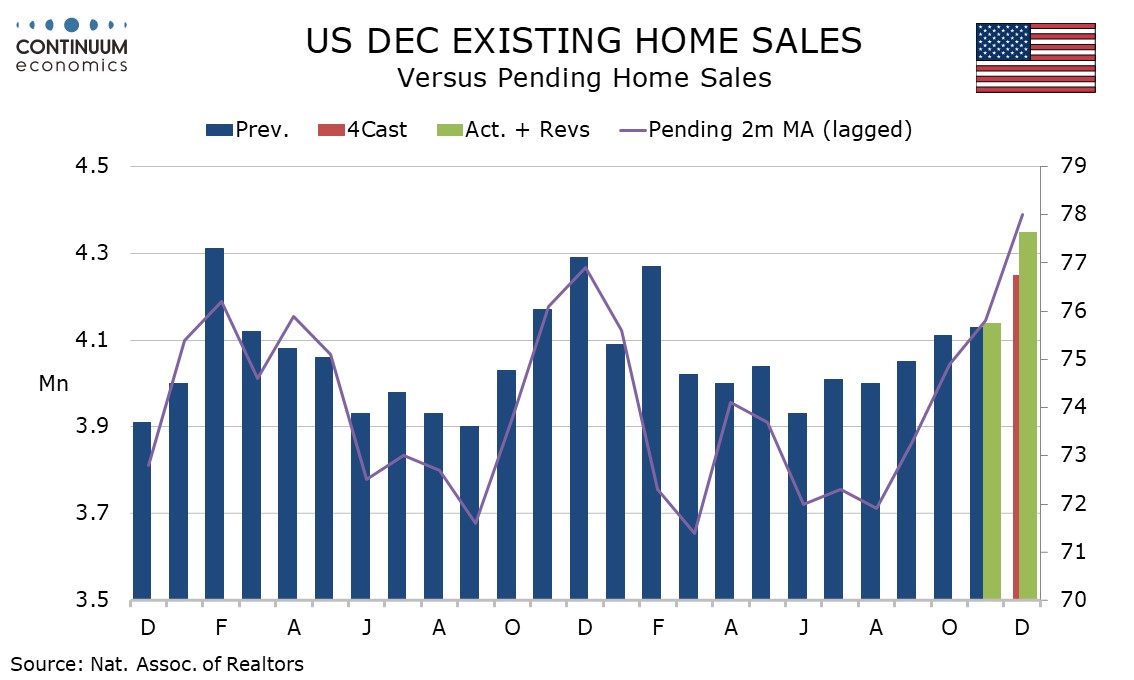 December existing home sales have seen a strong 5.1% increase to 4.35m, this the strongest of four straight gains and the highest level since February 2022.