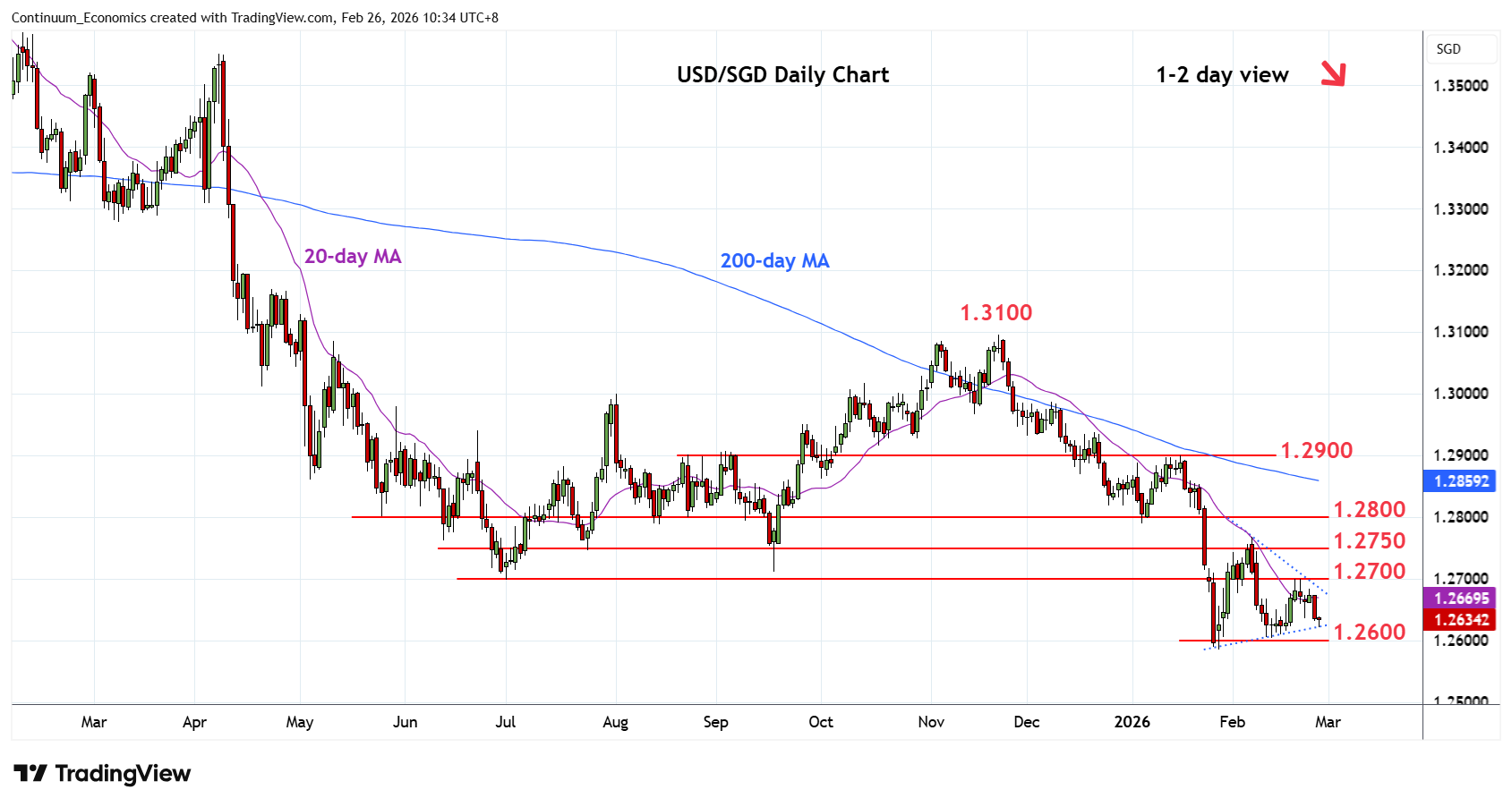Chart USD/SGD Update: Focus return to 1.2600/1.2586 lows
