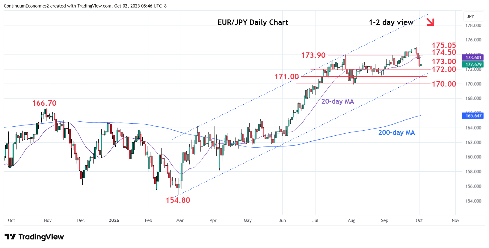 Chart EUR/JPY Update: Consolidating at 172.30 low, room for lower later