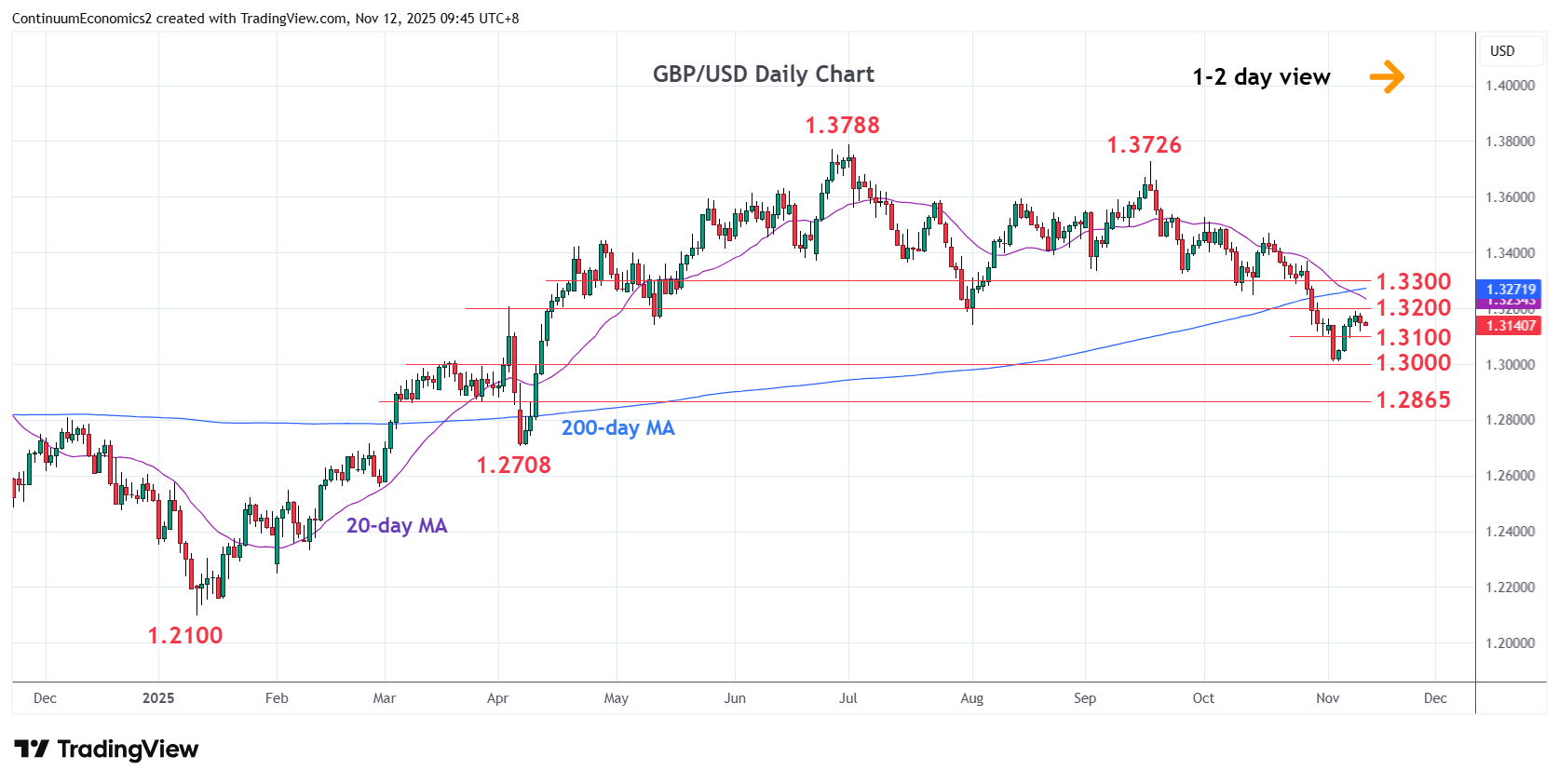 | R3 | 1.3300/24 | ** | congestion, Sep low | S2 | 1.3010/00 | ** | 4 Nov low, congestion | |
