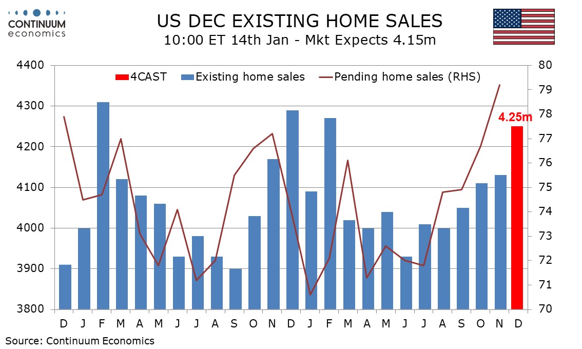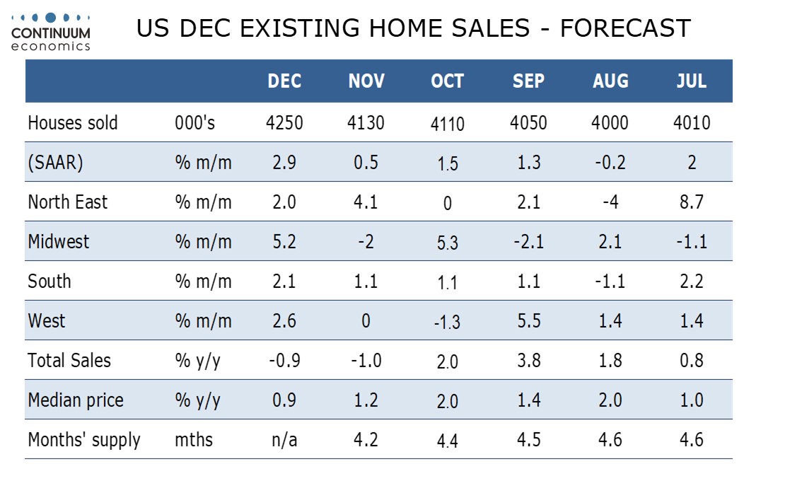 We expect December existing home sales to increase by 2.9% to 4.25m, which would be the strongest of four straight gains after a modest 0.5% rise in November.
