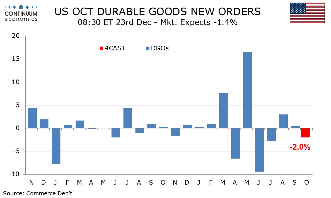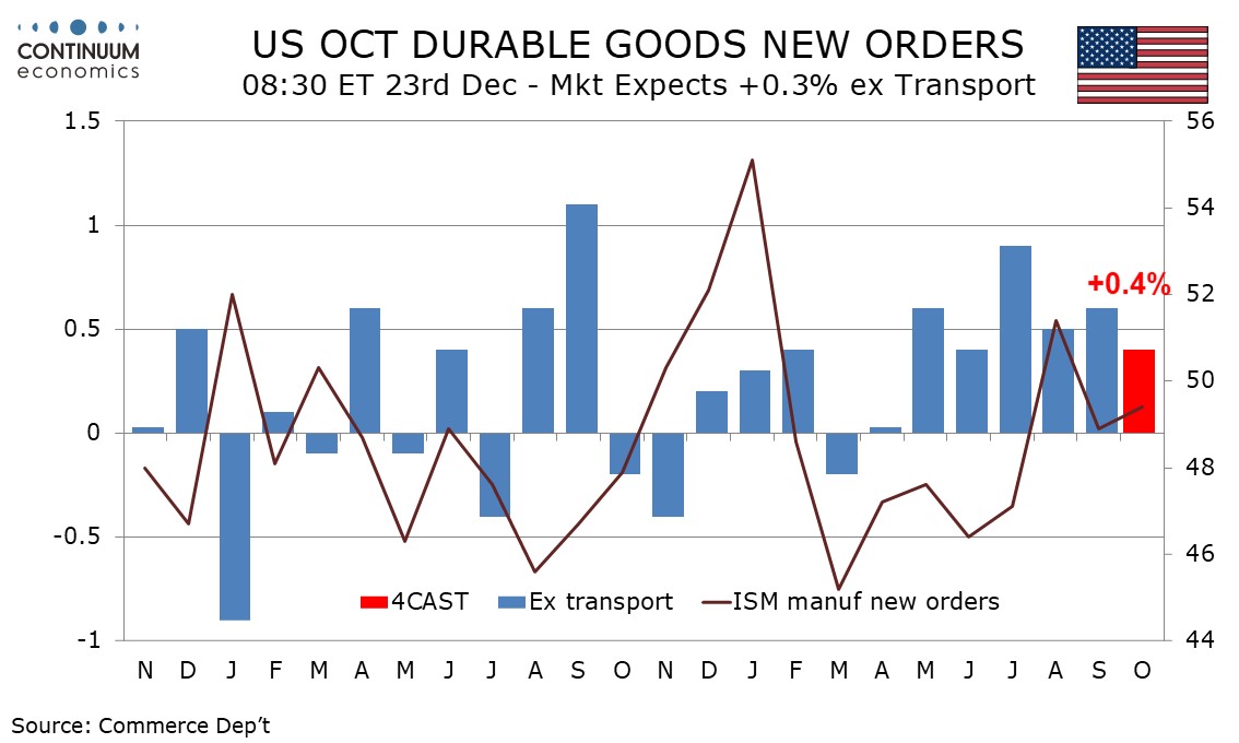 Preview: Due December 23 - U.S. October Durable Goods Orders - Transport to slip, but ex transport trend positive