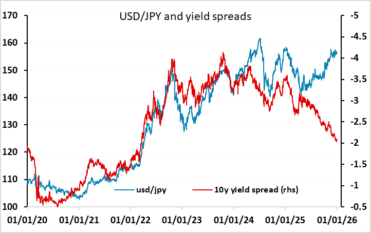 The JPY remains the great imponderable of the FX market. There is no doubt that it is dramatically undervalued both from a pure fundamental basis and based on the metrics that usually guide it, but the JPY bulls have received several bloody noses in the last year and may not have the appetite for further attempts this year unless there is some clear positive trigger. The most obvious possibility remains intervention from the Japanese authorities, which looks very possible or even overdue given the JPY’s decline and its failure to benefit from the usual drivers, notable the yield spread moves in its favour. Much more modest divergences from the spread relationship were enough to trigger intervention in April and May 2024. However, with USD/JPY trading in the middle of the 155.50-157.80 range seen on the day of the BoJ rate hike on December 19, and having held within that range since, we doubt we will see any immediate action from the Japanese authorities. But USD gains through the top of the range, which could result from a strong employment report, might well trigger a response.