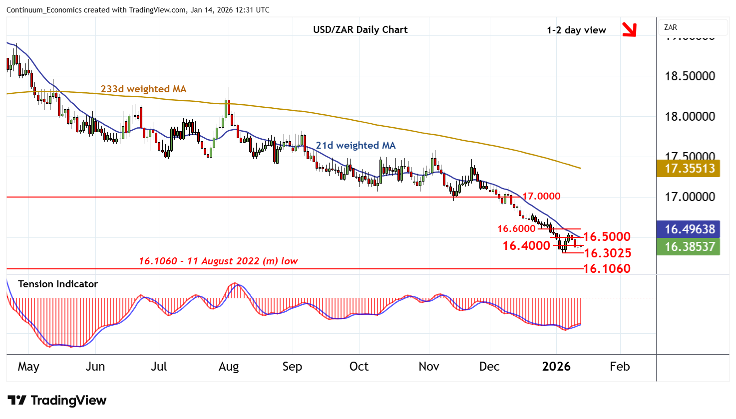 Little change, as prices extend cautious/choppy trade just below 16.4000