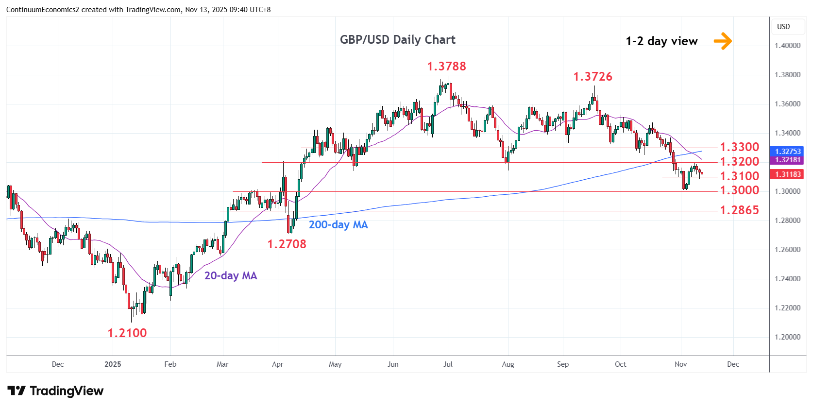 | R3 | 1.3300/24 | ** | congestion, Sep low | S2 | 1.3010/00 | ** | 4 Nov low, congestion | |
