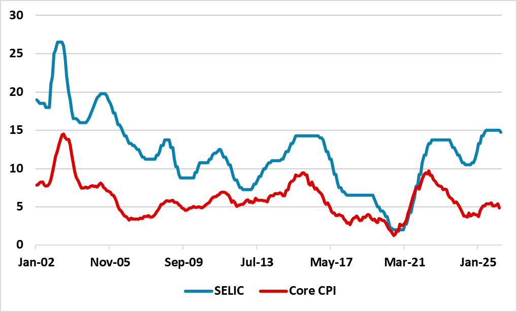 Figure 1: Brazil Core CPI and SELIC Policy Rate (%)